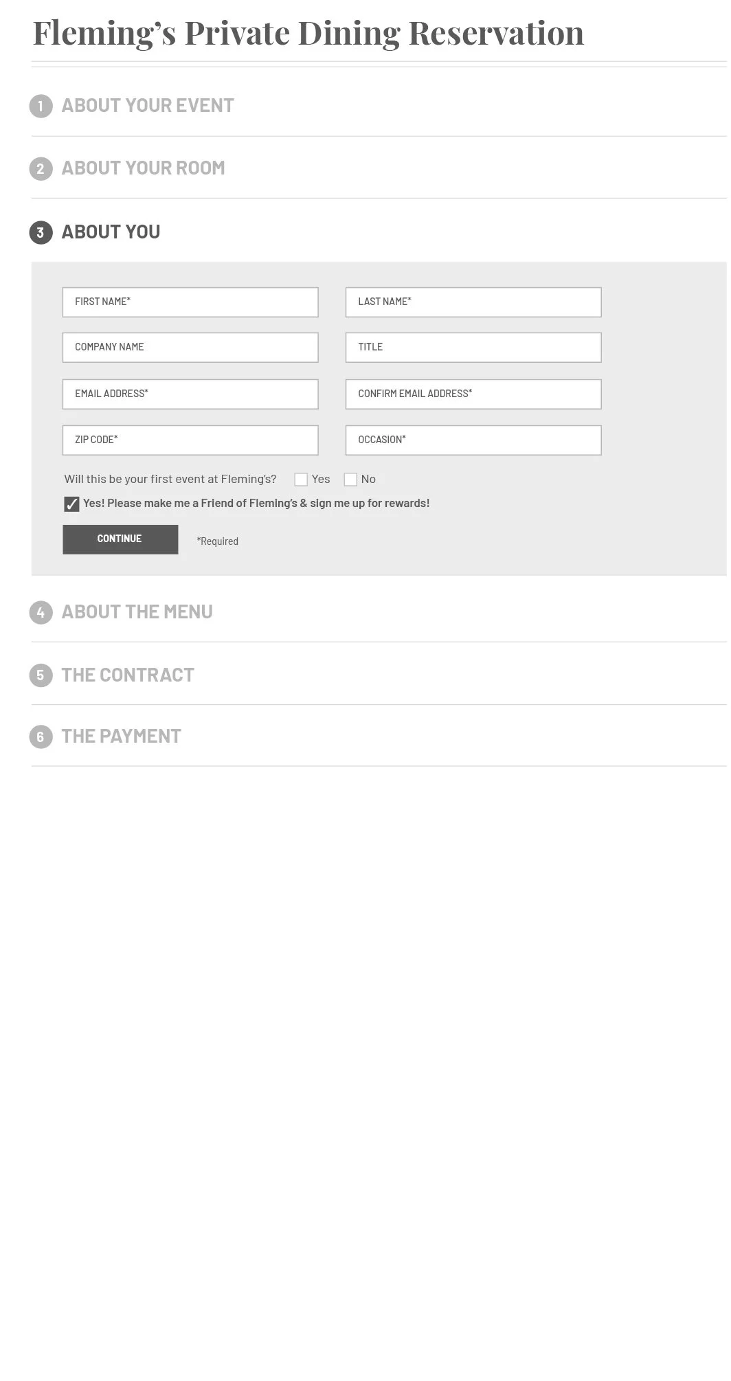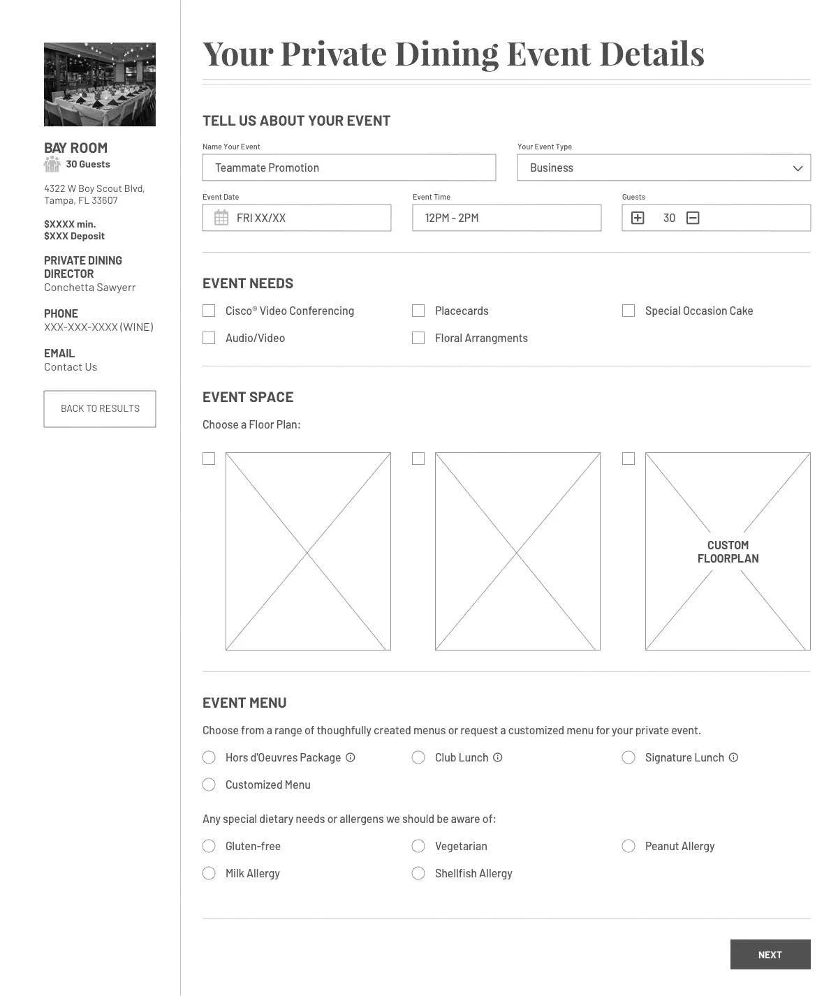 Simplifying the way customers book their business event or private dining experience was top of mind for Fleming’s Prime Steakhouse & Wine Bar. Transforming their lengthy, multi-step form into an optimized, informative but visual design was my main responsibility for this project.