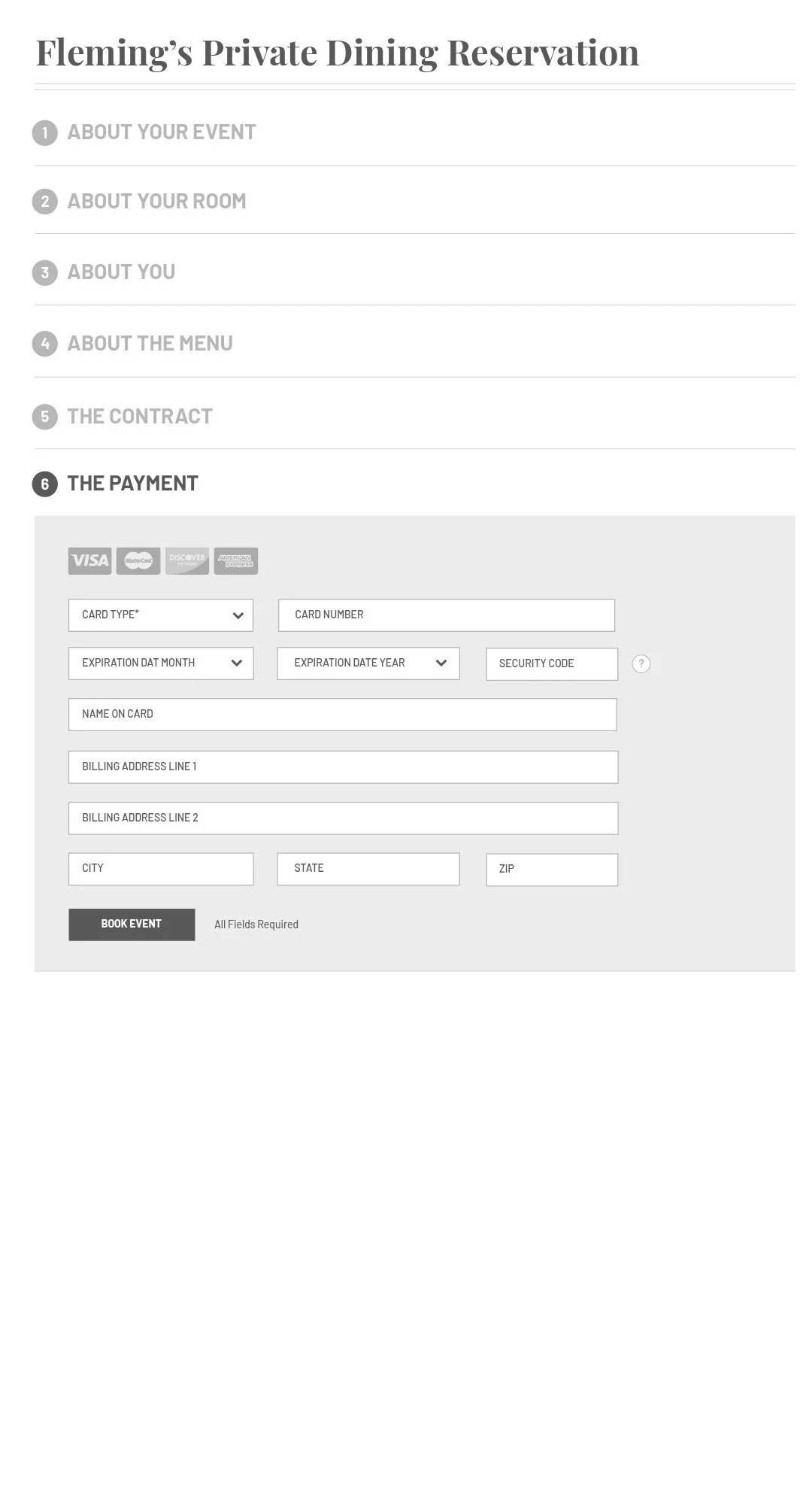 Fleming’s had an existing form design created by their digital marketing agency to capture details for business or private dining bookings. It was a lengthy six-step process which lacked additional details customers needed in order to make an informed decision before booking. The page required simplification and emphasis on availability, alternative options, guest count and transparency on minimum spend.
